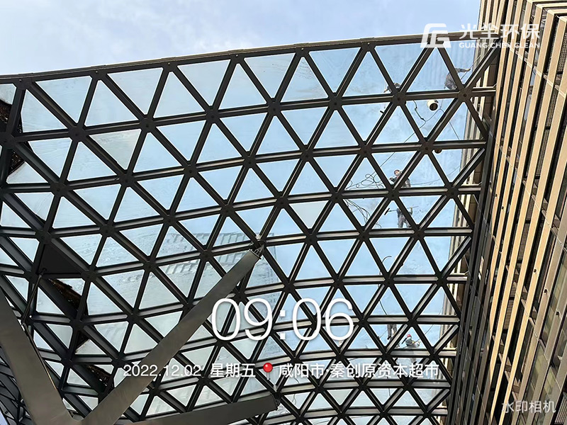我們奮戰(zhàn)在20米天幕上——光塵環(huán)保西安西咸新區(qū)外墻幕墻清洗現(xiàn)場(chǎng)